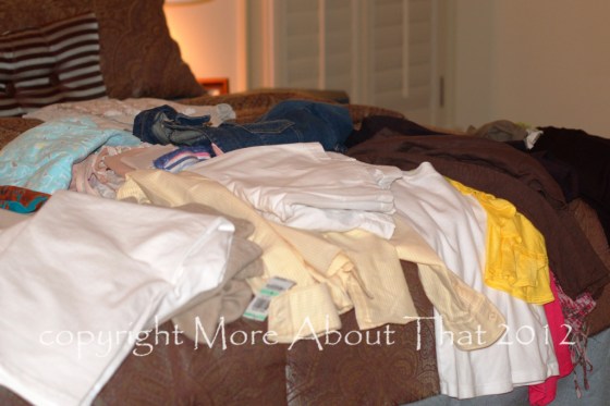 First I put together a packing list and then I pull everything out of the closet that I plan to take. So here is a look at my clothes that I pulled out of the closet.