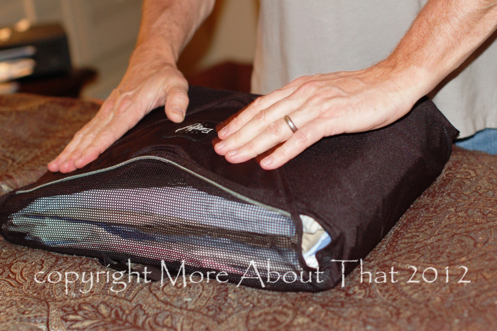 When you are ready to return from your trip, you can put everything back the way your originally packed it. I also like their Compression Pack Set for dirty clothes, wet swimsuits, etc. Just add your clothes to the bag and squeeze the air out and throw it in your suitcase.